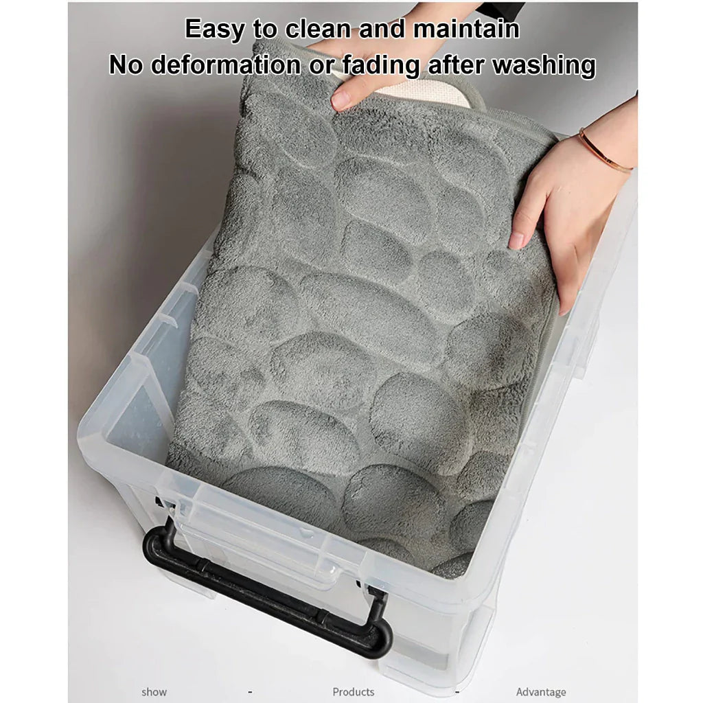 Tapete de banheiro com base antiderrapante, oferecendo segurança e conforto após o banho.